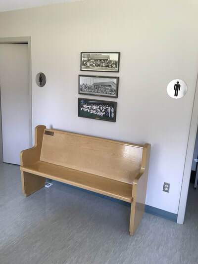 Take a load off while you get ready to use the restroom!